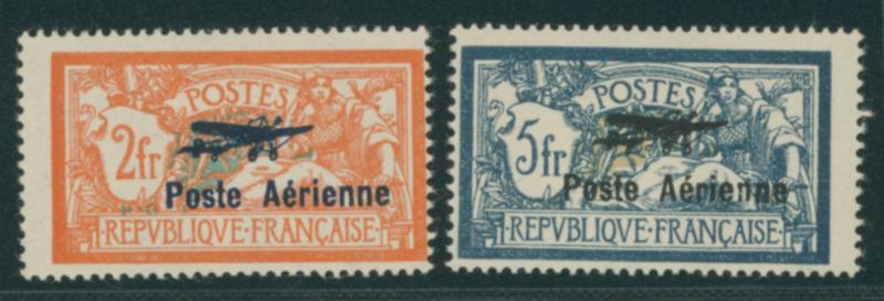 France 1927 airmail stamps 2fr 5fr unused partial gum, thin spot on the back, , 2 stamps catalog value:60,000YEN (Image1)