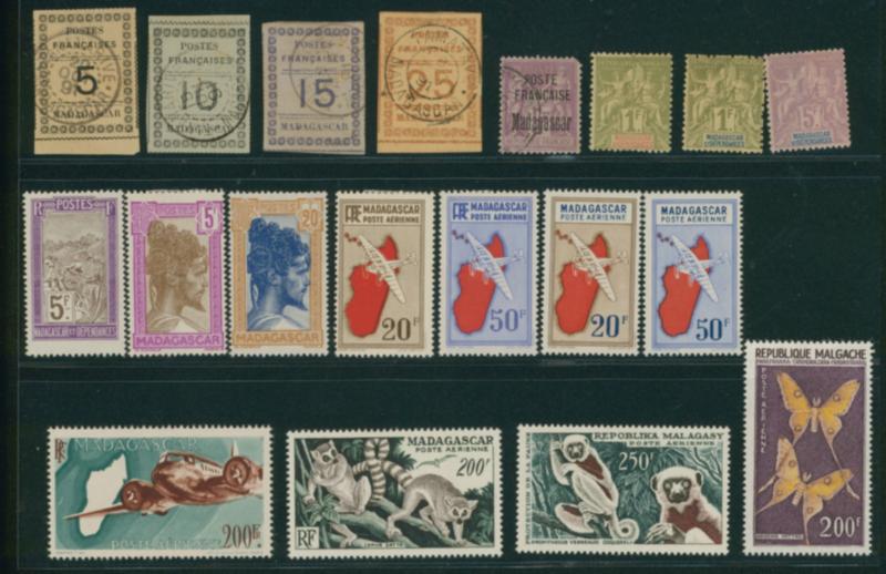 Madagascar 1891-196329leaves, 463 stamps mixed condition of unused and used, mainly unused with some used, catalog value:300,000YENYouTube (Image1)