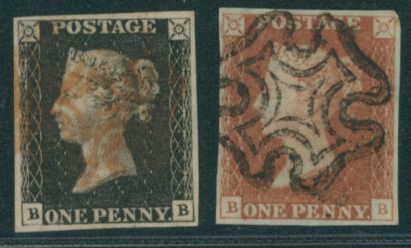 UK Penny black & red, Matched pair pl.9 BB used (Image1)