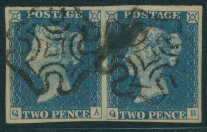 UK 1840 2p QA-QB pl.2 used full margin, cancelled by obliteration in black (Image1)