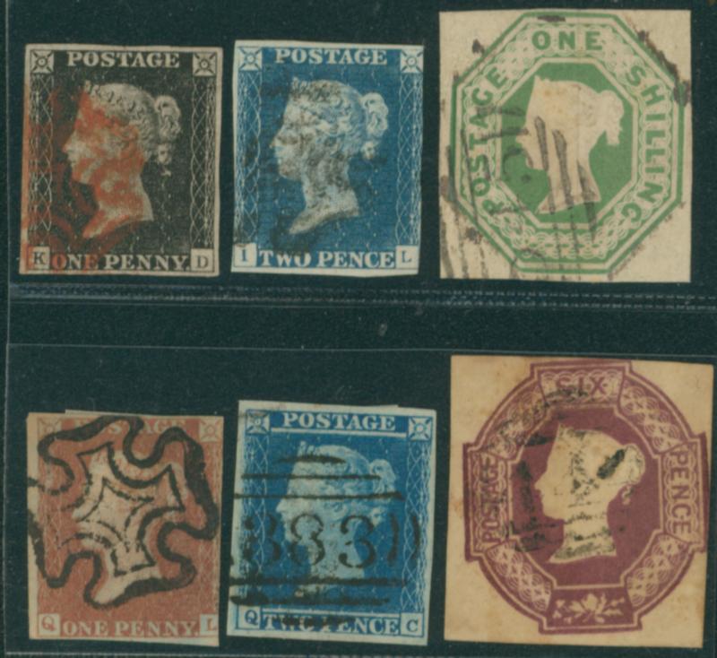 UK 1840-1854, 6 stamps 1840 1p 2p, 1841 1p 2p, 1sh 6p, used catalog value:400,000YEN as is (Image1)