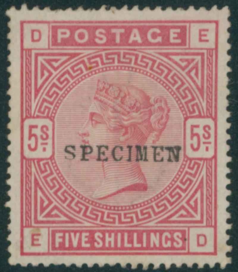 UK 1884 5sh SPECIMEN stained, specimen ovpt., no gum, (Image1)