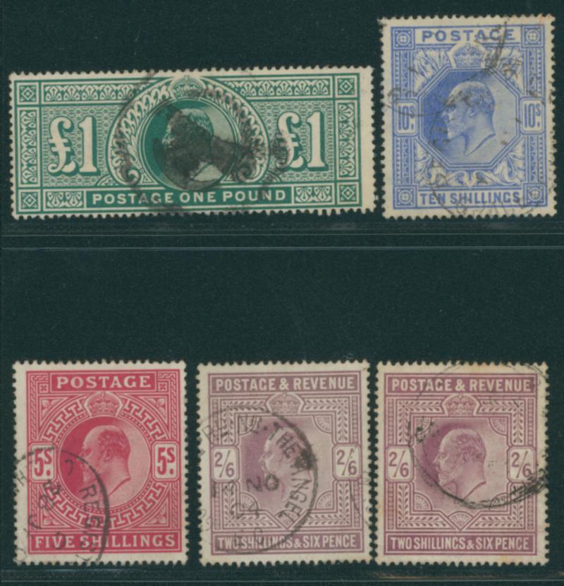 UK , 5 stamps 1902 £1 10sh 5sh 2sh6p used catalog value:280,000YEN (Image1)