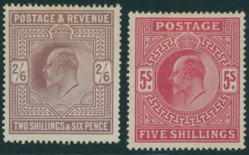 UK 1902-11 2sh6p, 5sh, unused stained, hinged, catalog value:90,000YEN (Image1)