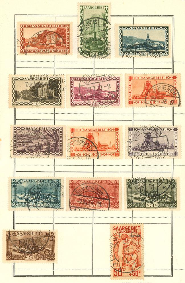 Old approvals book with interesting stamps (years circa 1920 to 1934), used or mint (some without gum), HIGH CATALOG VALUE. It was stored away without ventilation for decades and some stamps got glued, they will need to be soaked, very low start! IMPORTANT: Please view ALL the photos of the lot, because all the stamps have been scanned (Image)