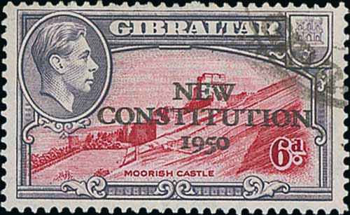 1950 6d New Constitution overprint, variety overprint double, fine used, very scarce. With R.P.S Certificate (2012). S.G. 142a, £1,300. Photo on Page 126. . (Image1)