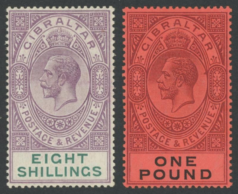 1912-24 KGV Multiple Crown CA Watermark ½d to £1 set SG 76-85, the 8/- with a small hinge remainder otherwise lightly mounted, Cat £350.