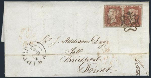 3 (Pair), Tied by two clear numeral "1" M/C cancels on folded letter to Bridport Dorset, 3 Nov 1843 double split-ring receiver. Stamps & cover VF (Image)