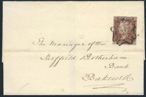 1 (Pl 6), Nice deep colour tied by red MC cancel on entire from London 11 Sept 1840 to Stourbridge. F-VF (Image)