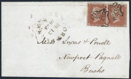 3 (Pair), Tied by 2 numeral "3" M/C cancels on folded cover with Newport Pagnell 13 Dec 1843 receiver. Stamps & cover VF (Image)