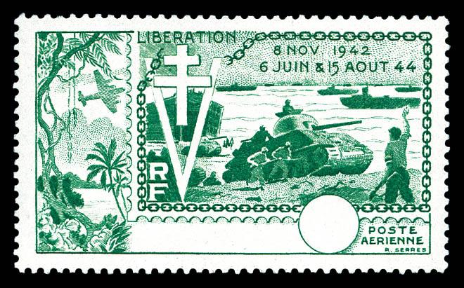 10e anniversaire de la Libération non émis: Vert sans faciale ni nom du territoire. SUP. R. (cote Maury) (certificat) Qualité: ** Cote: 325 euros (Image)