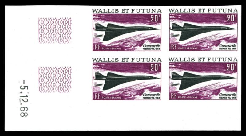 Concorde, non dentelés. Afars, Comores, Nelle Calédonie, St Pierre et Wallis, en bloc de quatre coin daté. SUP (certificat) Qualité: ** Cote: 1980 euros (Image)
