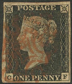 Sc.1, 1840 1p. black, the first stamp of the world, used, very nice! (Image)