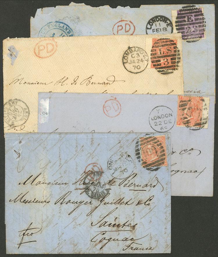 4 Folded covers, etc. used between 1868 / 1870, fine to VF quality, low start! IMPORTANT: Please view ALL the photos of the lot, because all the material has been scanned. (Image)