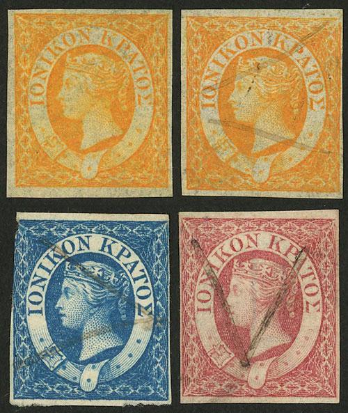 Yv.1/3, 1859 Victoria, 3 values pen cancelled + the ½p. value mint without gum, very nice! (Image)
