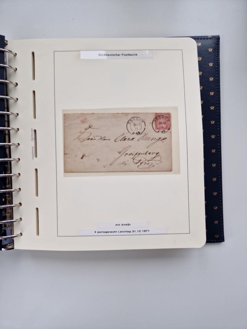 11867/71, kleine Sammlungspartie mit 23 Briefen mit Schwerpunkt NDP, dabei R-Briefe, bessere Orte, 10 Teilfrankaturen, kpl. Paketkarte von Berlin, Blanko-Abschlag "BERLIN C63 F. 30.4.80” auf Umschlag und Brief von Berlin in die USA, dazu fünf Briefe mit Bahnpoststempeln