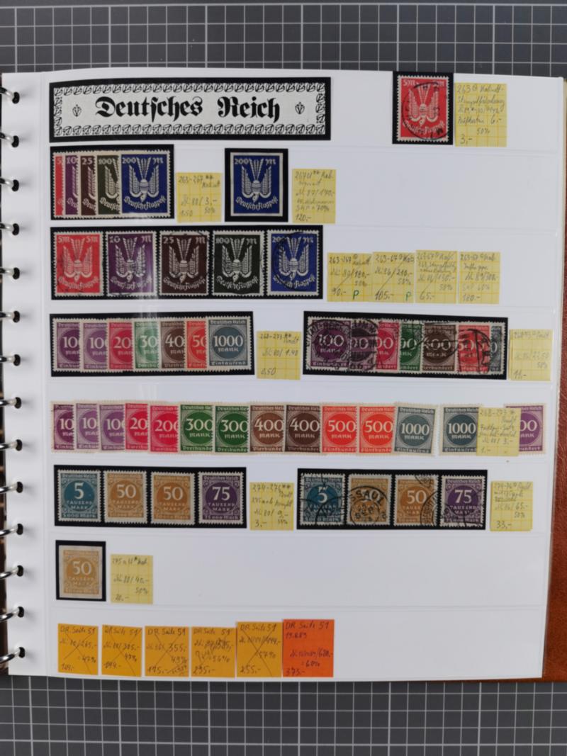 1872/1923, gestempelte und ungebrauchte/postfrische Sammlung im Steckbuch, parallel in beiden Erhaltungen geführt, Brustschilde bis auf MiNr. 24+28 in den Hauptnummern komplett, das weitere Kaiserreich mit Farben spezialisiert mit Farben gesammelt, hier mit MiNr. 33aa, 35b, 36b, 38b, 46ba, 49aa, 50ab, 66 (2), 81Aa je gestempelt, 96AIa ungebraucht, 97AIa gestempelt, 94AII postfrisch, 95AII postfrisch, 97AII postfrisch, sodann die Inflationsausgaben in ähnlicher Struktur, wenn erforderlich signiert BPP bzw. Infla, meist gute Erhaltung.