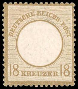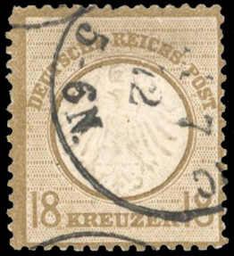 1872, 18 Kr. großer Schild ockerbraun, gestempelt, farbfrisch und üblich geprägt, Stockpunkt oben und kleine Fehlstelle links, Fotoattest Jäschke-Lantelme BPP 04/2021 (ME 2.800,-) (Image)