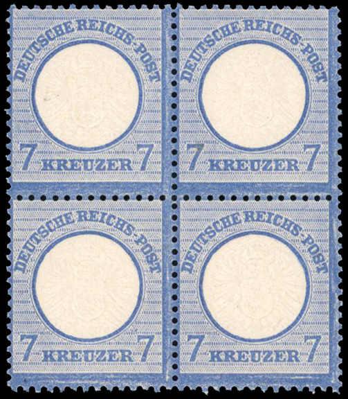 1872, 7 Kr. ultramarin großer Brustschild im postfrischen Viererblock, gute Qualität, keine Signaturen (Image)
