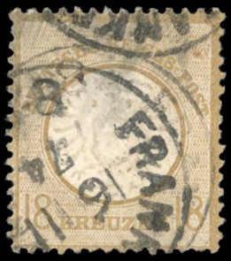 1872, 18 Kr. kl. Brustschild mittelockerbraun, gest. Einzelwert, farbfrisch und üblich gezähnt, sign. Krug BPP, einwandfrei (ME 500,-) (Image)