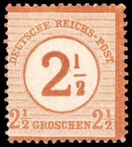 1874, 2 ½ auf 2½ Gr. großer Schild braun mit seltenem Plattenfehler I "versetzte 1 der ½ im Aufdruck nach links" in ungebrauchter Erhaltung, Altsignaturen FRANKE und LEONHARD, Fotoattest Sommer BPP (ME 650,-) (Image)