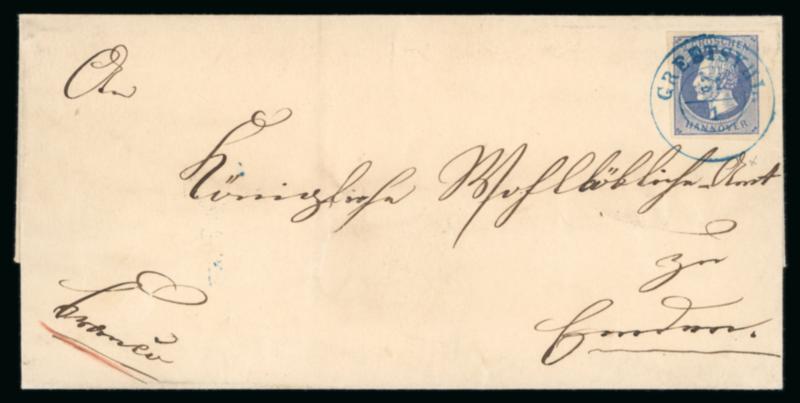 1859 2gr, wide-margined stamp tied by superb and ideal strike of the scarce Greetscyhl 31.1 cds (Aurich, Ostfriesland); a very fresh and well-preserved cover to Emden, ex Metzer. (Image)