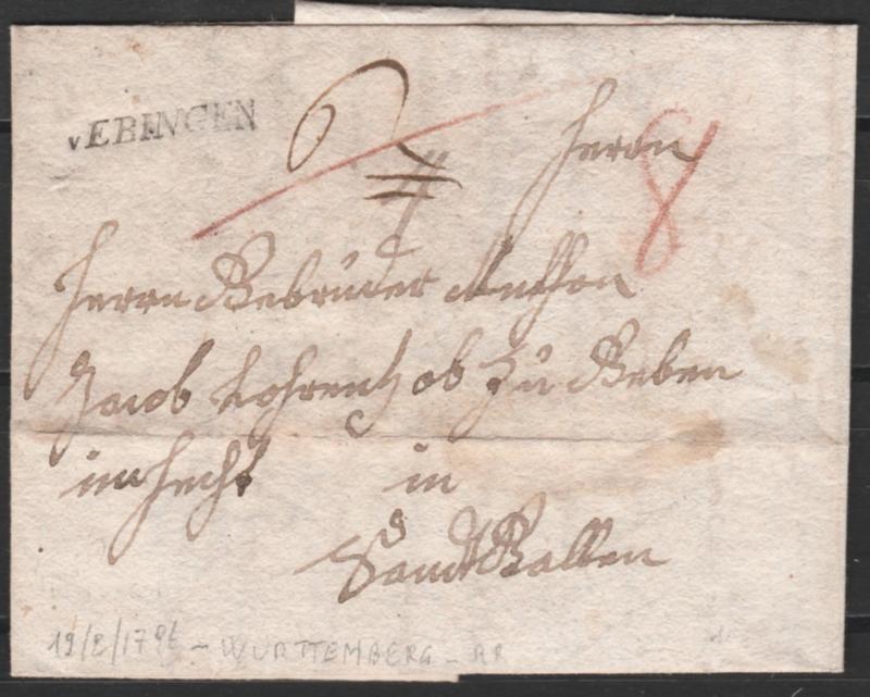 Germania Prefilateliche. 19/12/1796 - Württemberg. SPL (Image)