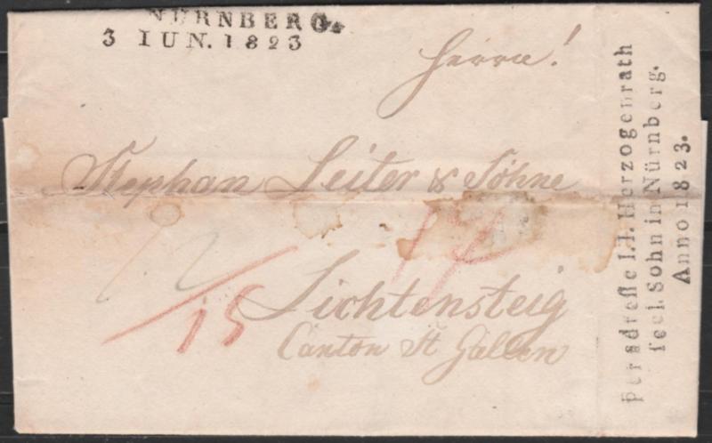 Germania Prefilateliche. 3.01.1823 - Lettera da Nurnberg per Lichtensteig (Svizzera). SPL (Image)
