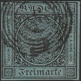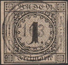 Germania Antichi Stati - Baden. 1851 - 1 k. brunastro n. 1. Firma sorani. Cat. € 400,00. SPL (Image)