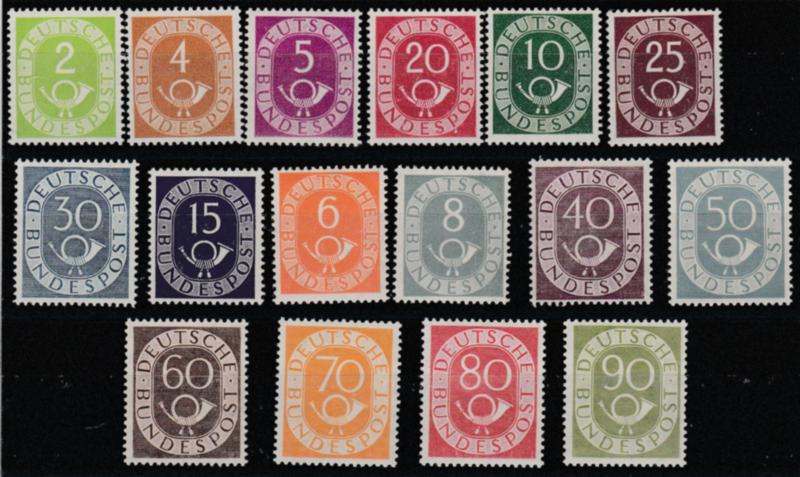 Germania. 1951-52 - Corno di Posta, la serie n. 9/24. Cert. R. Diena. Cat. € 2200,00. SPL (Image)