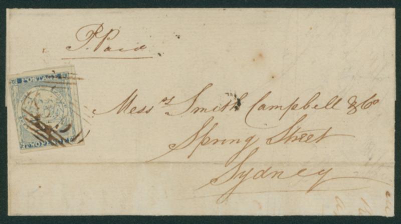Australia NSW 1850-1851 2p single franking cut into face, cancelled by obliteration in brown 1851-03-30 ( )OXA arrival :SYDENY 1851-04-04 folded paper, torn cover, a part of the cover (Image1)