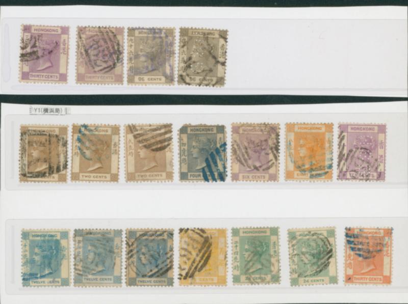 Hong Kong 1863-1880 , 18 stamps used cancelled by obliteration catalog value:100,000YEN (Image1)