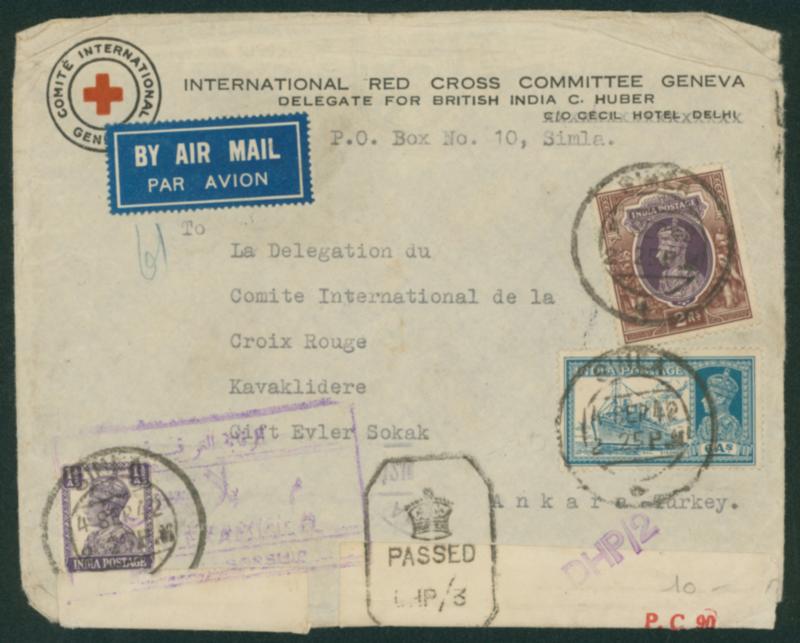 India cancelled by datestamp 1942-09-04 SIMLA to Ankara airmail , military mail (Image1)