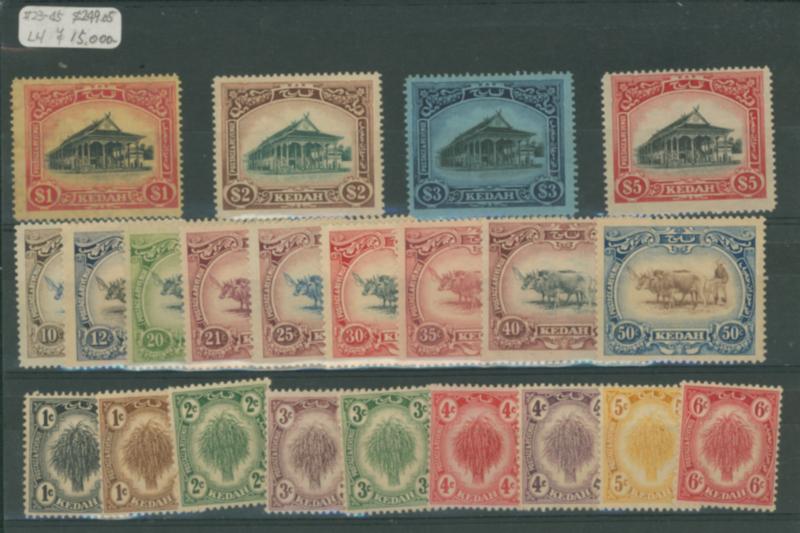 Malaysia Kedah 1c-$5 22 examples unused hinged, catalog value:42,000YEN (Image1)