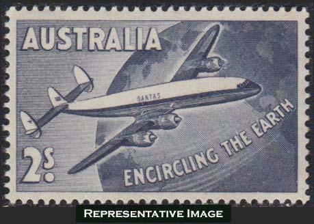 1958 Scott C8, 2/ Super Constellation Over Globe Inauguration of Australian 'Round The World' Air Service Air Post. Mint never hinged. (Inv AUSC8S1) (Image)