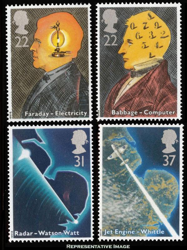 1991 Scott 1360-1363, 22p Faraday Electricity, 22p Babbage Computers, 31p Watson-Watt Radar and 37p Whittle Jet Engine Scientists and Their Technology. Mint never hinged. (Inv GRB1360S1) (Image)