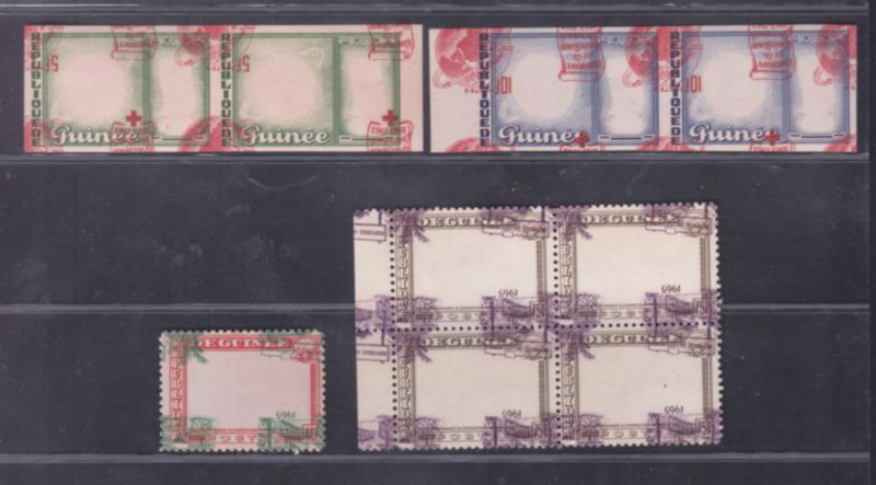 Guinea 2 Imperf pairs+ block of 4+ single, 9 unused center inverted error variety stamp collection (Image)