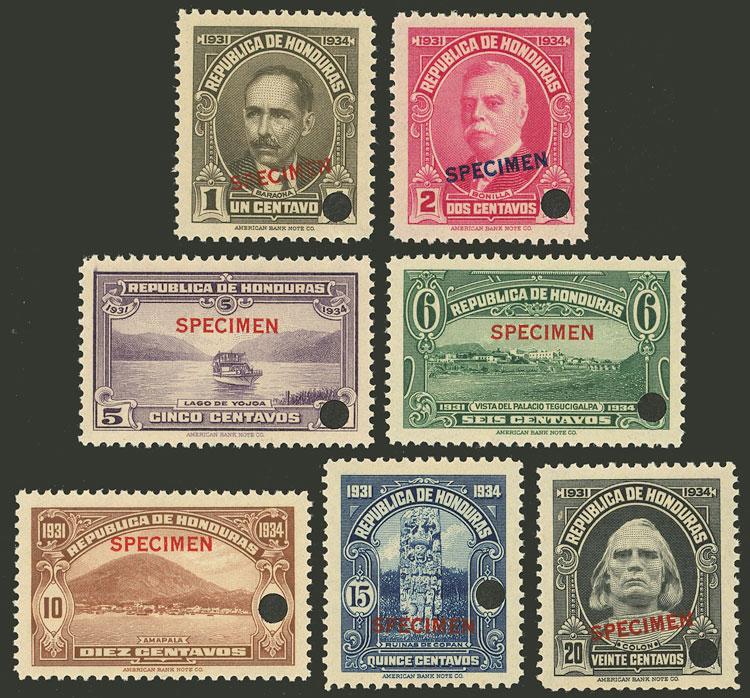 Yvert 228/234, year 1931, 7 values of the set with SPECIMEN overprint and punch hole, MNH, excellent quality! (Image)