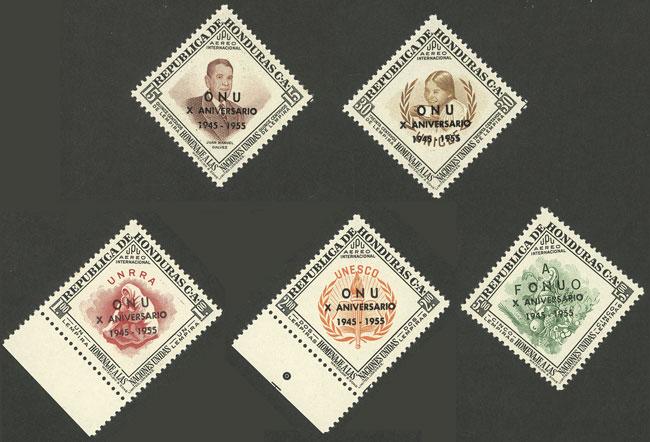 Yvert 221/25, 1955 UNO 10th anniversary, cmpl. set of 5 values, MNH, excellent quality! (Image)
