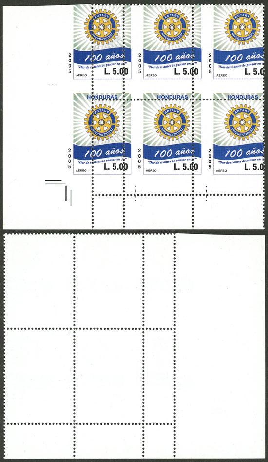 Sc.C1184, 2005 5L. Rotary, block of 6 with very shifted perforation and also double on the left side, excellent! (Image)