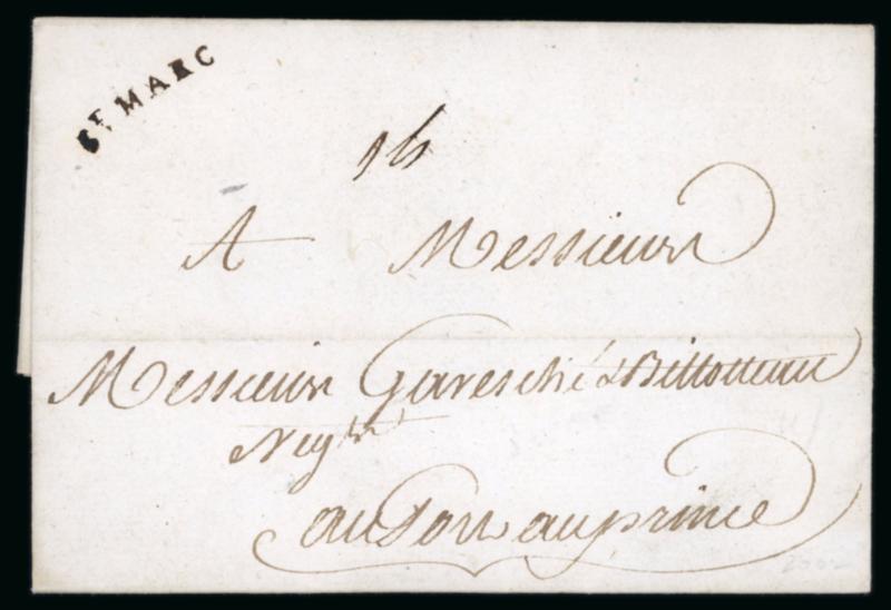1781 (7 December) entire from St Marc to Port au Prince bearing fine strike of cursive St Marc handstamp, 1 escalines local charge. light central filing crease. (Image)