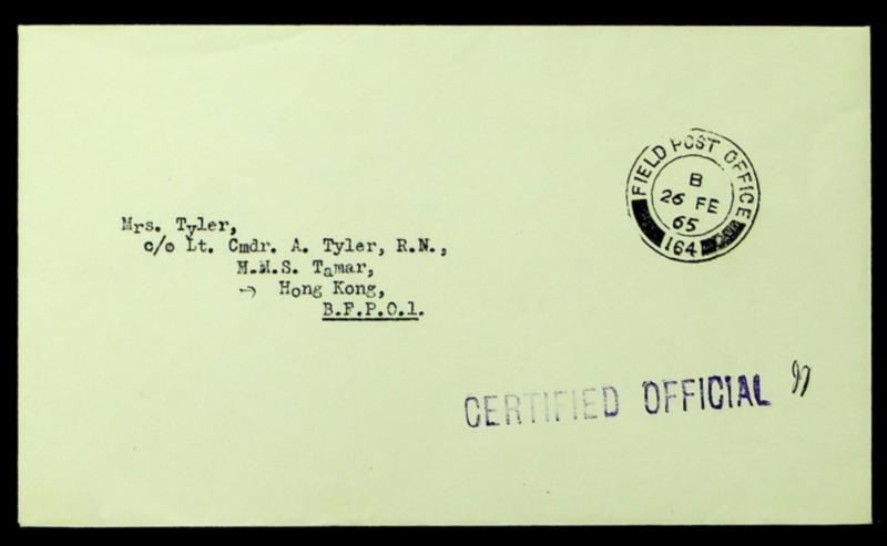 Hong Kong China 1965 St. George's School Kowloon FPO-164 Certified Official cover to HMS Tamar, BFPO-1 (Image)
