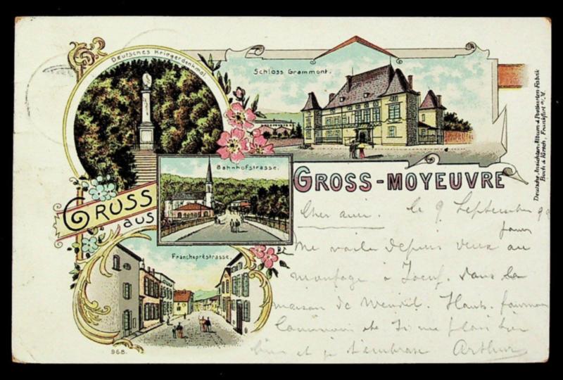 Germany 1899 Greetings from Moyeuvre PPC w/ 5pfx2 via Singapore to Hong Kong China (Image)