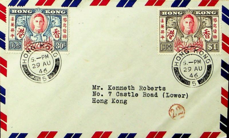 Hong Kong China 1946 2v KG VI on Airmail cover sent locally (Image)