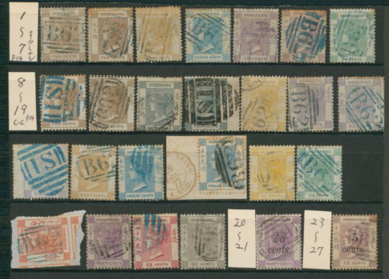 Hong Kong 1862-1880 26 examples used cancelled by obliteration in B62,S1 as is (Image1)