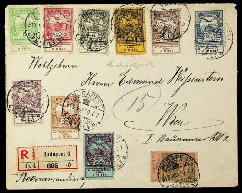 Hungary 1920 11v regd cover from Budapest to Wien Austria (Image)