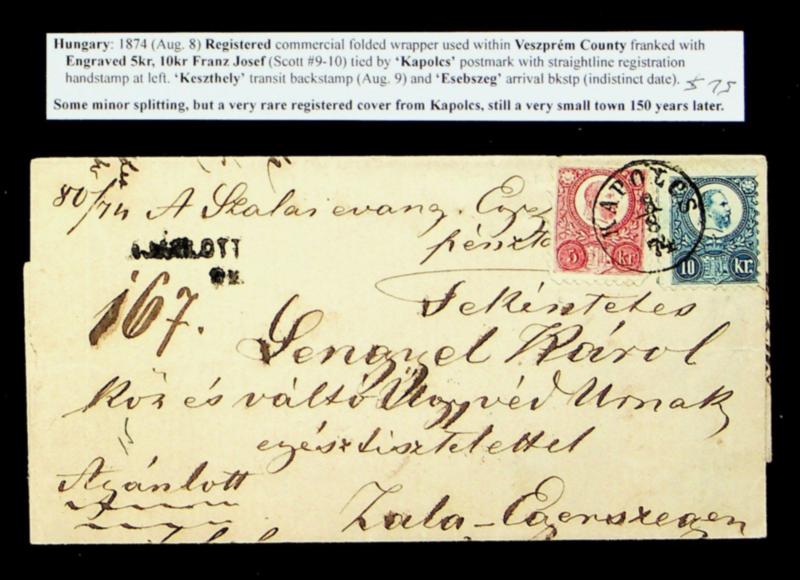 Hungary 1874 Franz Josef 2v on commercial wrapper from Kapolcs via Keszthely to Esebszeg (Image)
