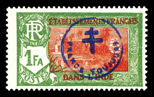N°230T, 'FRANCE TOUJOURS': 1 r vert-foncé et outremer. SUP (signé Brun/certificats) Qualité: ** Cote: 1900 euros (Image)