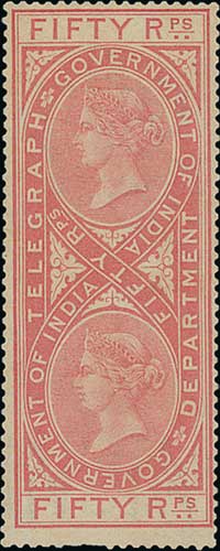1869-78 50r Rose, die I unmounted mint, three pulled perfs at base, otherwise fine. S.G. T19, £1,500. Photo on Page 110. (Image1)