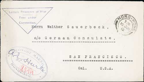 1908 (Jan 28) Stampless cover (flap with embossed Crown over "MM") addressed to "Miss Lees, Central Telegraph Office, Calcutta" with hooded circle "VICEROY'S CAMP P.O / POSTAGE / PREPAID" datestamp in purple, the cover with a little foxing but very rare and unusual, believed to be the only recorded example of this hooded circle datestamp.